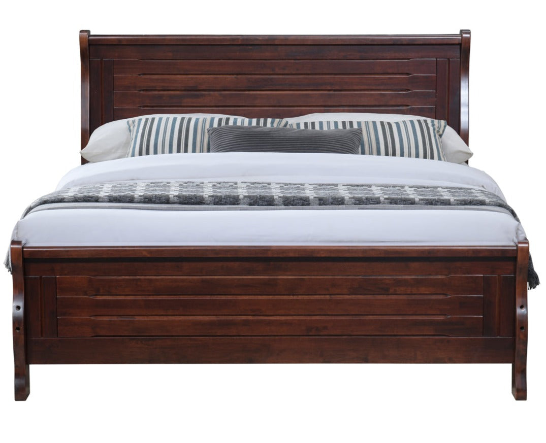 DESCRIPTION: Solid rubber wood with panel mattress support.
