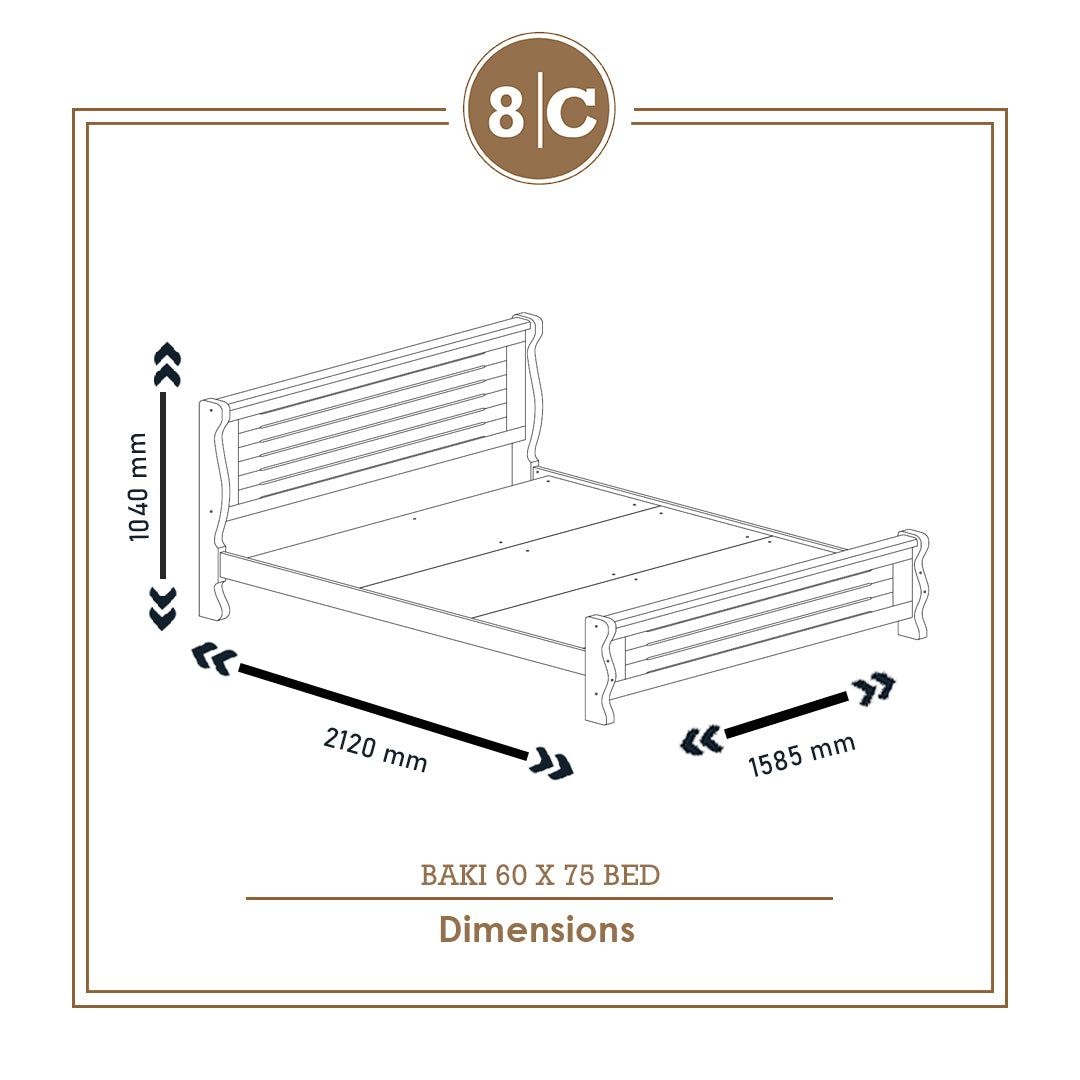 Queen: (60 x 75); L1585 x W2120 x H1040 mm
