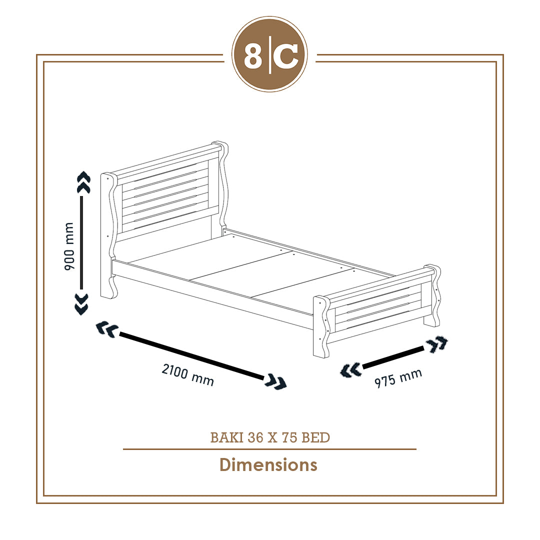 Single: (36 x 75)- L975 x W2100 x H900 mm