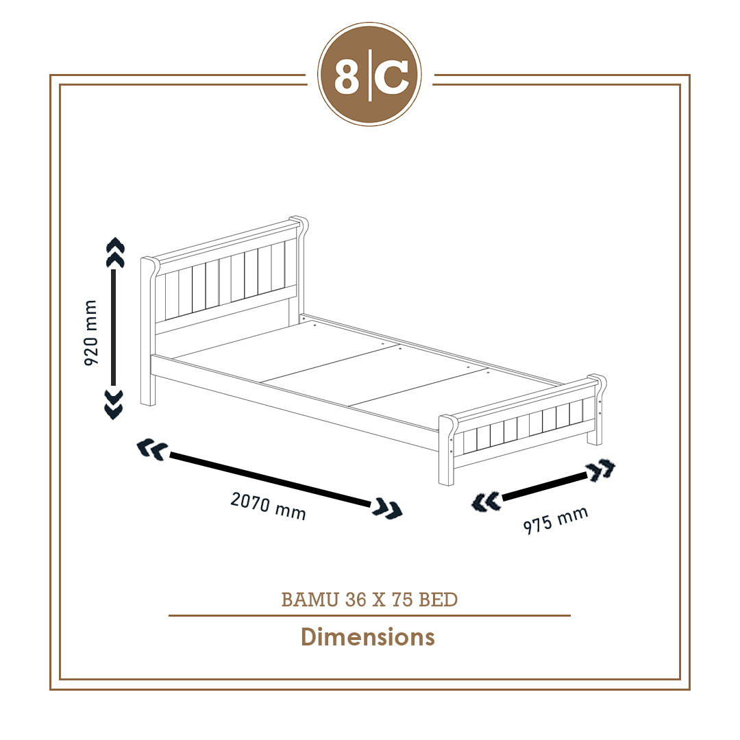 Single: (36 x 75)- L975 x W2070 x H920 mm Queen: (60 x 75); L1585 x W2070 x H920 mm |