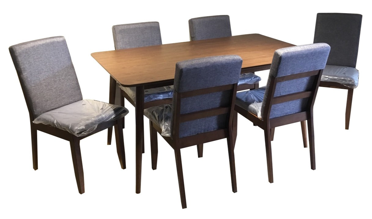 | DESCRIPTION: | Table: Solid wood framing in wood stain finish with MDF wood veneer table top. Chair: Solid wood framing in wood stain finish with fully upholstered back and seat. |