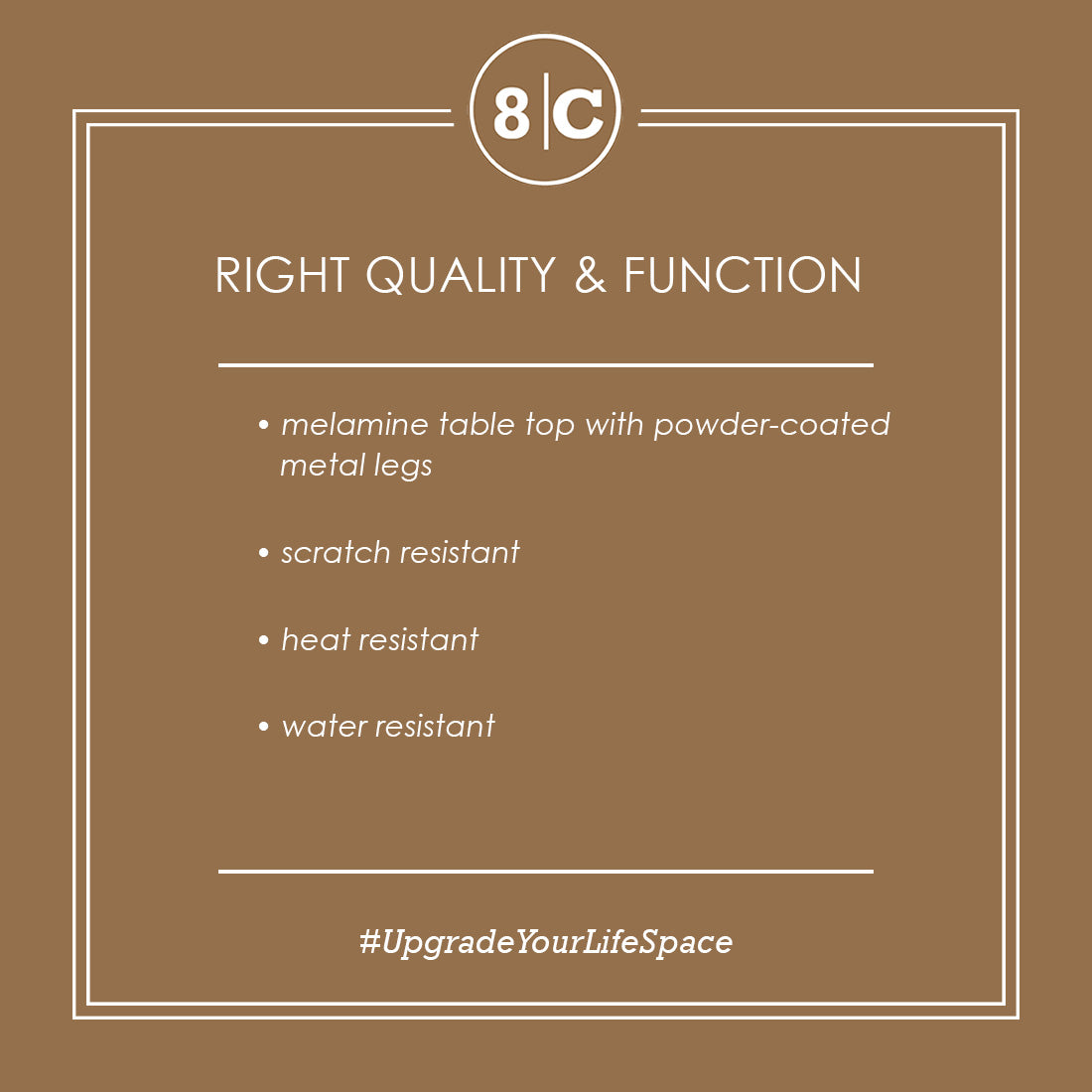 DESCRIPTION: melamine table top with powder-coated metal legs