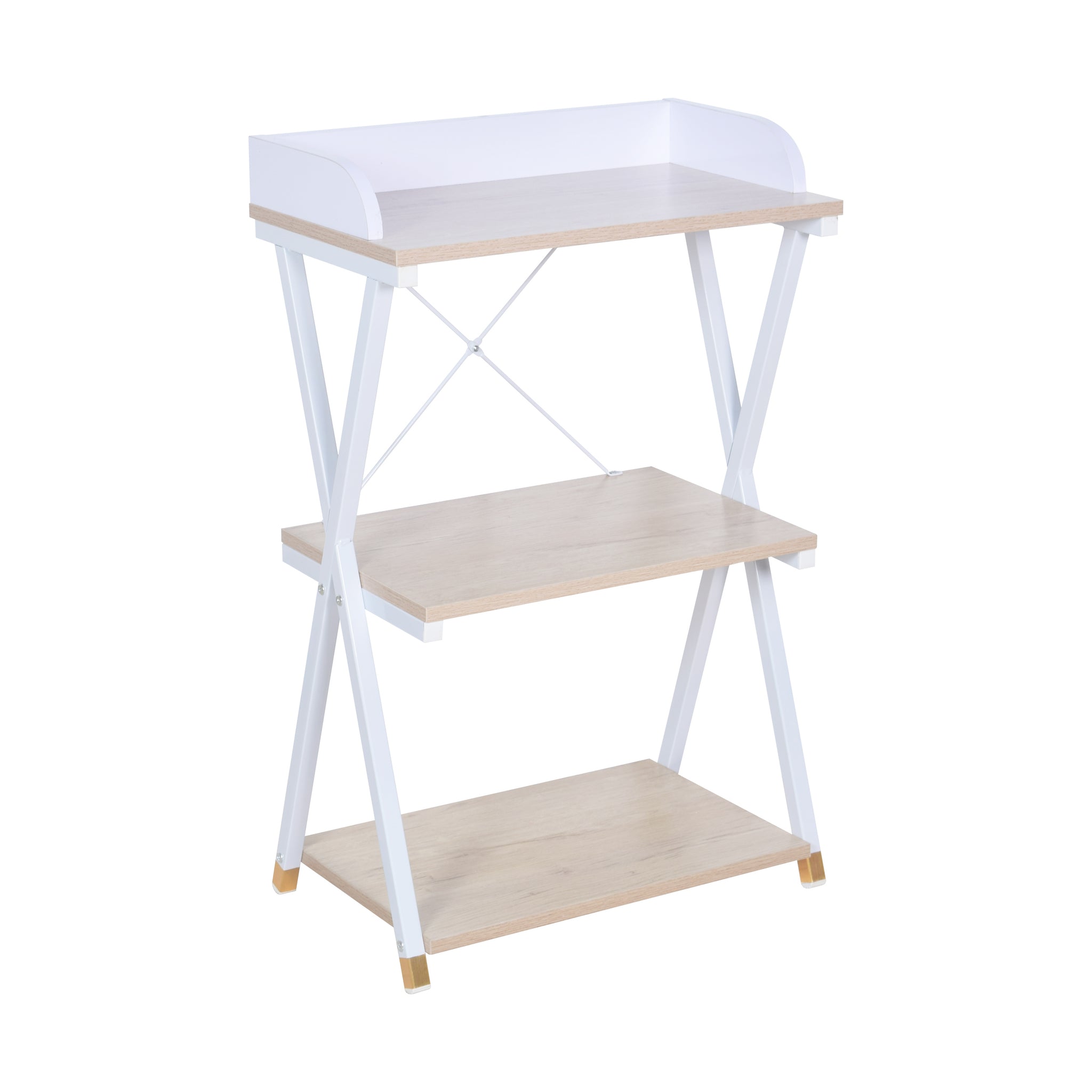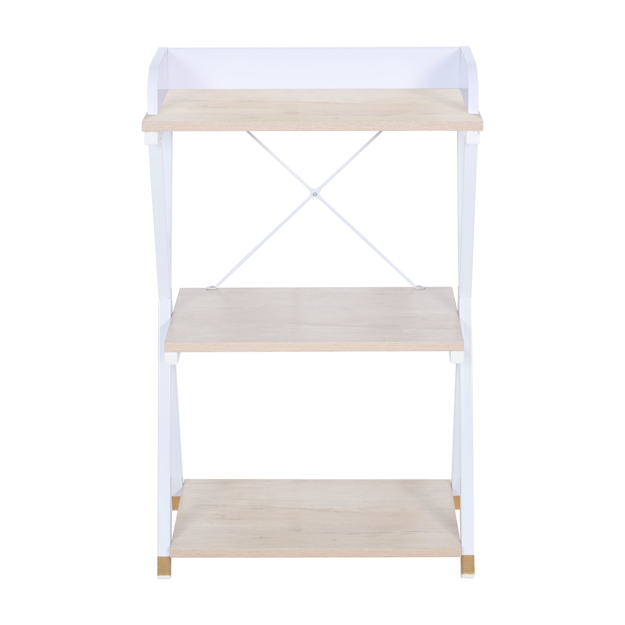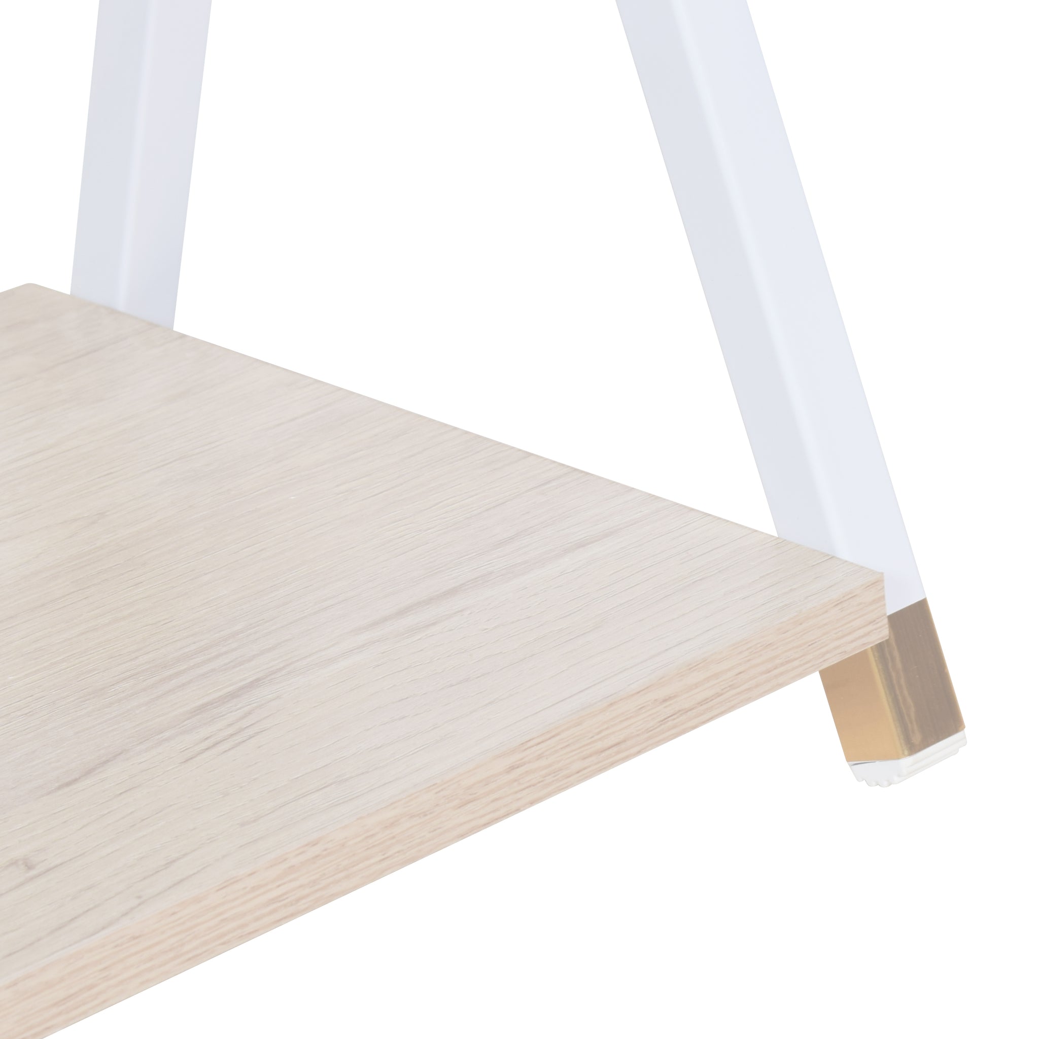 | DESCRIPTION: | Metal base in powder-coated finish with accent gold footing and melamine shelves. |
