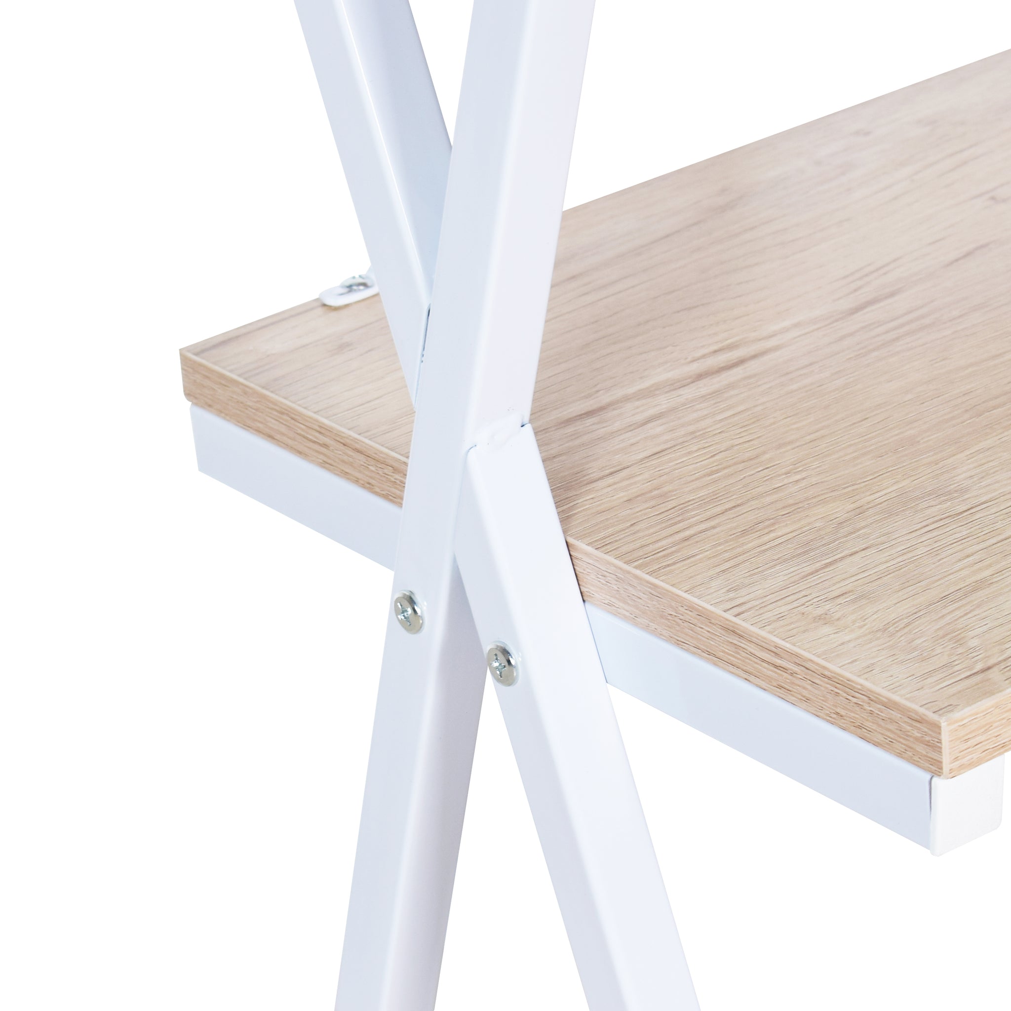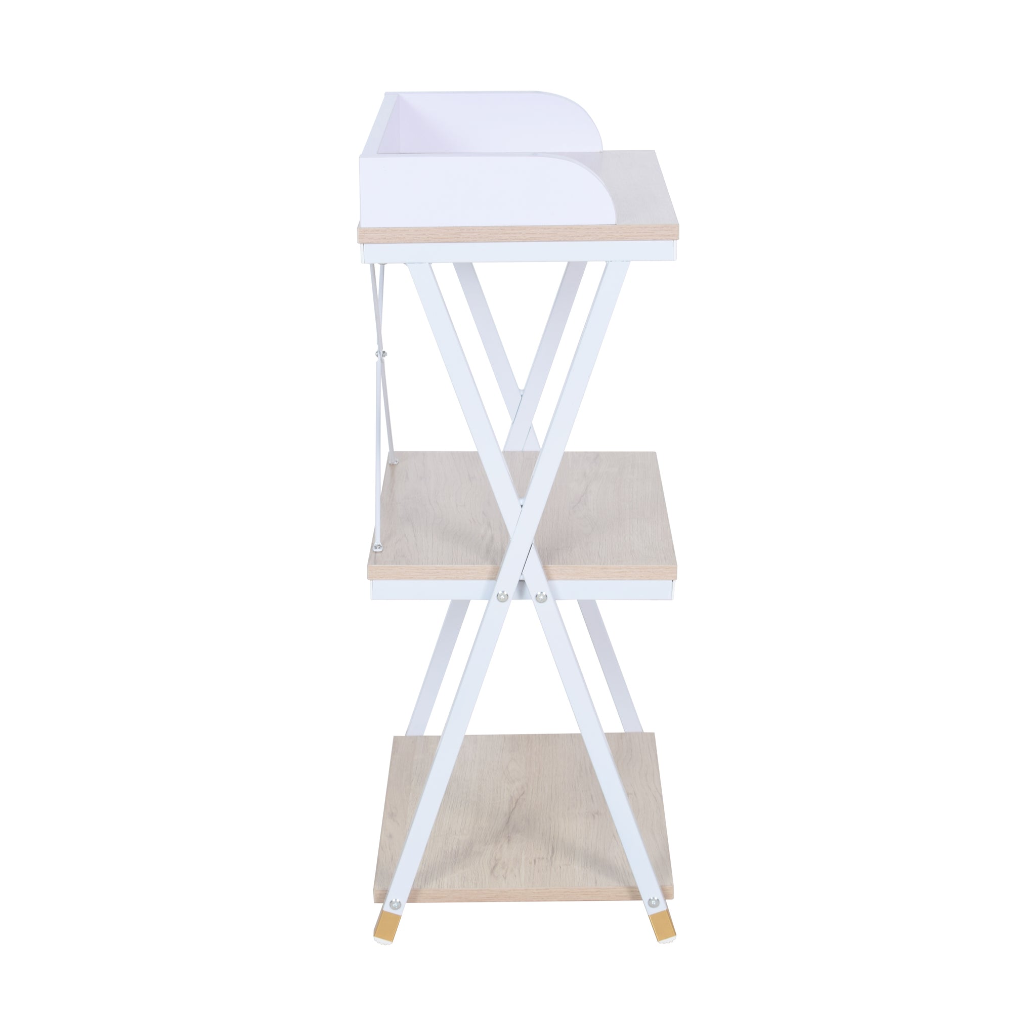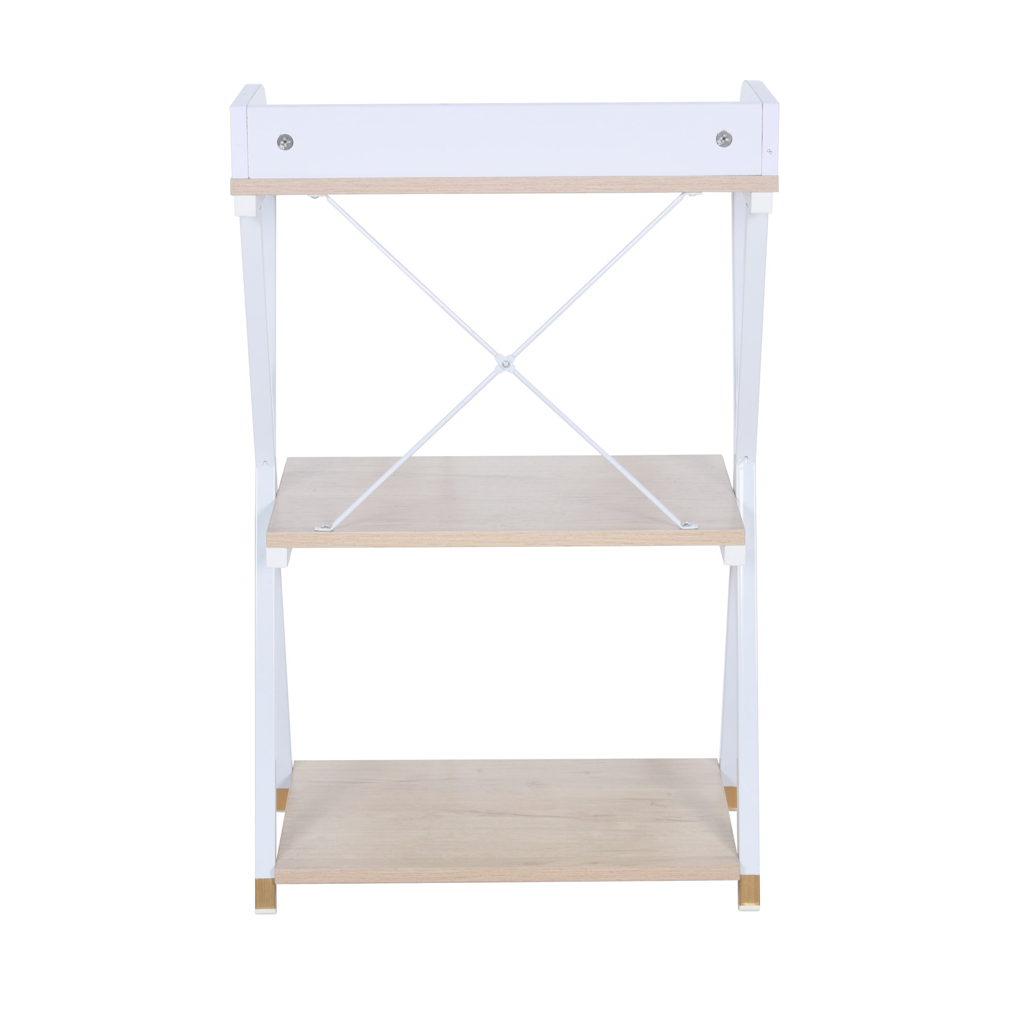 | DESCRIPTION: | Metal base in powder-coated finish with accent gold footing and melamine shelves. |