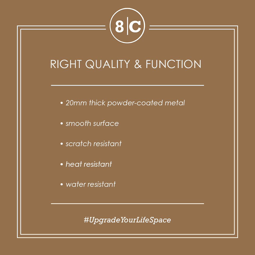 | DESCRIPTION: | Metal framing in powder-coated finish with melamine table top. |