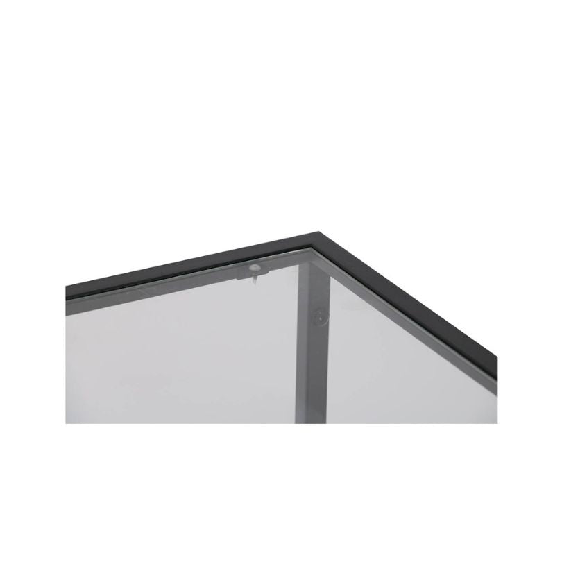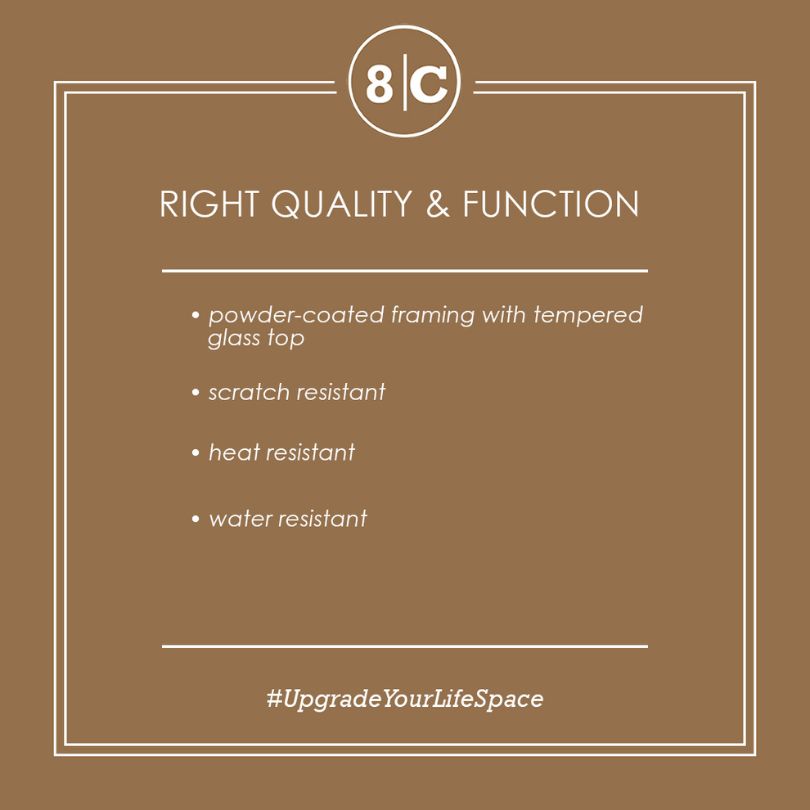 DESCRIPTION: tempered glass top with powder-coated framing